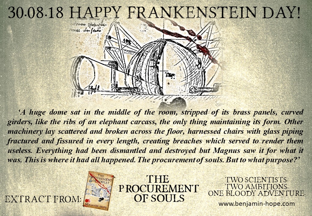 To celebrate the wonder of Mary Shelley’s Frankenstein this ‘Frankenstein Day’, here’s an extract from my novel, The Procurement of Souls.